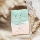 Schöne türkisfarbene abstrakte Aquarell glitzernde Ozeanwelle und Herzen im Hintergrund des Sandstrandes, mit stilvollem Drehbuch und eleganten Serif-Schriftart, modern und einfach. Wir danken Ihnen für die Hochzeit des Wasserstrands, die tropische Hochzeit in Urlaubsort, die Hochzeit zum Thema Küstenmeer im Sommer.