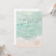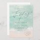 Schöne türkisfarbene abstrakte Aquarell glitzernde Ozeanwelle und Herzen im Hintergrund des Sandstrandes, mit stilvollem Drehbuch und eleganten Serif-Schriftart, modern und einfach. Große Hochzeitseinladung zum Hochzeitsfeiern mit dem Thema Wasserstrand, tropische Hochzeit in Urlaubsort, Hochzeitsfeiern zum Thema Küstenmeer im Sommer.