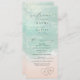 Schöne türkisfarbene abstrakte Aquarell glitzernde Ozeanwelle und Herzen im Hintergrund des Sandstrandes, mit stilvollem Drehbuch und eleganten Serif-Schriftart, modern und einfach. Große Hochzeiten für Hochzeiten an den Wasserstränden, tropische Hochzeit in Urlaubsort, Hochzeiten an der Küste im Sommer.
