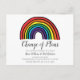 Diese moderne Skriptänderung der Dattelkarte weist einen farbenfrohen Regenbogen auf und kann mit Ihren Aufschiebungsinformationen personalisiert werden. Ideal für Verlobungen, Brautpartys, Hochzeiten, Babyduschen, Jubiläumsfeiern, Taufen, Geburtstagsfeiern, Abschlüsse. Entwickelt von Thisisnotme©