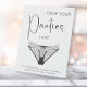 Dieses minimalistische Skript Drop Your Panties Here Pedestal Sign ist der perfekte Weg, um Ihr Brautparty oder Junggeselinnen-Abschied im Stil zu feiern. Elegante und moderne Typografie und niedliche Panties. Sie können dieses Design personalisieren, indem Sie auf "Diese Vorlage personalisieren" klicken oder wenn Sie den Schriftart, die Hintergrundfarben ändern oder die Designelemente anders anordnen möchten, klicken Sie auf "Bearbeiten mit dem Entwurfswerkzeug".