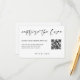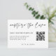 Diese innovative Karte kombiniert elegante Skripttypografie mit einem anpassbaren QR-Code und ermöglicht Ihren Gästen den einfachen Zugriff auf Fotos, Videos und Nachrichten von Ihrem besonderen Tag aus. Ideal für Hochzeiten, Party oder Feiern, fügt es den traditionellen Festen eine zeitgemäße Drehung hinzu. Die aus hochwertigem Cardstock gefertigte Gehäusekarte ist stilvoll und funktionell zugleich und integriert nahtlos Technik in Design. Personalisieren Sie es nach Ihrem Thema und sorgen Sie für ein einheitliches Erscheinungsbild, das Ihren einzigartigen Stil widerspiegelt. Mit seiner modernen Ästhetik lädt diese Karte die Gäste ein, sich in Ihre liebevoll gepflegten Erinnerungen einzubringen.