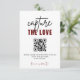 Erhöhen Sie Ihre Hochzeitsszenarien mit unserer Script Capture The Liebe QR code Wedding Foto Share QR Code Encolosure Card. Dieses wunderschön gestaltete Schild zeichnet sich durch eine delikate Kalligraphie aus, die Ihrem besonderen Tag eine Touch an Eleganz verleiht. Personalisieren Sie es mit Ihren Namen und Hochzeitsdatum. Ideal für Empfang-Tische, Geschenktische oder als Keepsake. Bestellen Sie jetzt, um dauerhafte Erinnerungen zu schaffen!