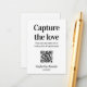 Die *Modern Script Capture Die Liebe QR Code Enclosure Card* auf Zazzle ist eine einzigartige und stilvolle Möglichkeit, Ihre Liebe oder Ihre Hochzeitsdetails mit Ihren Gästen zu teilen. Diese Karte mit elegantem, modernem Skript und anpassbarem QR-Code ermöglicht es Ihren Lieben, mit einem einfachen Scan auf eine personalisierte Website, eine Foto-Galerie oder ein Video zuzugreifen. Ideal für Hochzeiten, Verlobungen oder besondere Anlässe, fügt diese Karte eine persönliche Touch hinzu und fügt sich nahtlos in zeitgenössische Design-Trends ein. Mit seinem hochwertigen Druck und seiner durchdachten Funktionalität ist es eine ideale Wahl für Paare, die gewollt haben, ihre Veranstaltung unvergesslich zu machen. Mit dieser schön gestalteten Einschließkarte können Sie Ihre Feier mit Bequemlichkeit und Stil bereichern.