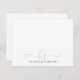Personalisierte moderne, stilvolle Notenkarte mit extravaganten Kalligraphie-Schriftzeichen oder Monogramm mit lila Namen. ÄNDERUNGEN: Der Textstil, die Farbe, die Größe und die Platzierung des Schriftartes können durch Klicken auf BEARBEITEN geändert werden. OPTIONEN: Das Beispiel wird im Format 4.25x5.5 angezeigt. Andere Größen sind auf der Bestellseite verfügbar. HILFE: Für Hilfe bei der Modifizierung oder Personalisierung des Designs, bei Farbänderungen, bei der Größenänderung, bei der Übertragung des Designs auf ein anderes Produkt oder wenn Sie die Dinge koordinieren möchten, wenden Sie sich bitte an den Designer, BEVOR Sie über die Registerkarte Zazzle Chat MESSAGE unten bestellen, oder per E-Mail an makeitaboutyoustore@gmail.com.