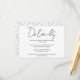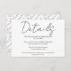 Moderne Skriptkalligrafie Schwarz-Weiß Hochzeitsgehäuse Karte. Ein elegantes, minimales Schwarz-Weiß Hochzeitsdesign mit dem Wort "Details" in Schrift calligraly. Auf der Rückseite befindet sich ein Schwarz-Weiß-Muster Ihrer Namen. Bitte beachten Sie, dass, wenn Ihre Namen auf der Rückseite mehr oder weniger Platz benötigen, diese so anpassen, dass sie die Textgröße entsprechend vergrößern oder verkleinern.