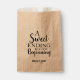 Das Design enthält "A Sweet Ending to a new Beginning" in einem modernen Schriftart Schrift Typografie. Ideal für Hochzeiten, Brautpartys und Verlobungen. Set sie am Süßigkeiten- oder Keksbuffet oder packen Sie ein köstliches Stück Gourmetfleck oder Schokoladenstücke. lass Ihrem Süßzahn inspirieren, um Ihren Gästen einen Gefallen zu geben, der alle glücklich über den Inhalt dieser kleinen Papiertüte sprechen wird!