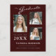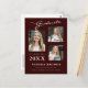 Moderne 3 Foto Abschluss Ankündigung Postkarten. Dieses individuelle Design kombiniert handgeschriebenes, kalligraphisches Skript mit modernem Text in weiß und hellgrau auf einem stilvollen bordeauxroten Hintergrund. Die Rückseite des Designs bietet anpassbare Textfelder für Ihre Ankündigung und Absolventen-Informationen. Um mehr zu sehen, besuchen Sie meinen Shop hier unter "www.Zazzle.com/LakeViewCardCo". Danke
