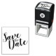Moderne Script Wedding Save the Date Rubber Briefmarke mit dem Titel "Save the Date" im modernen Script Schriftart Stil.