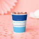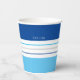 Diese modernen Papiertassen weisen ein farbenfrohes Muster mit blauen und weißen Streifen auf. Personalisieren Sie es mit Ihrem Namen ganz oben. Passen Sie das Farbschema an, indem Sie auf Weitere Anpassungen klicken.