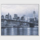 Verpacken Sie Ihre Geschenke im stilvollen Stadtstil mit diesem eleganten New Yorker Stadt-Skyline-Geschenkpapier. Mit einer dramatischen Schwarz-Weiß-Ansicht der Brooklyn Bridge und der Skyline von Manhattan, die sich im Wasser spiegelt, schafft dieses moderne urbane Design eine auffallende und stilvolle Präsentation für jeden Anlass.