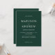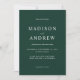 Moderne smaragdgrüne Hochzeitseinladung mit elegantem Typografie-Design. Personalisieren Sie Ihre persönlichen Daten für eine individuelle Hochzeitseinladung.