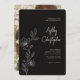 Moderne Smokey Black Foliage Kontur Foto Hochzeit Einladung
