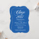 Feiern Sie Ihre Highschool oder Ihren Uni-Abschluß mit einem schicken, modernen königsblauen Abschluss. Mit einem klassischen Kalligraphie-Schriftart wird diese Einladung bestimmt Ihre Familie und Freunde "begeistern". Um die Schriftart- und Schriftart-Farbe zu ändern, klicken Sie auf den Button "Anpassen".