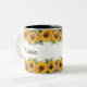 Personalisierte Vornamen trendige niedliche moderne Sonnenblumen blühen auf weißem Hintergrund in zwei Tönen Tasse, um Ihren Lieblings-Tee oder Kaffee im Stil mit unserer Sonnenblumen-Tasse zu trinken. Lebhafte gelbe Blumen verleihen Ihrem Morgen eine fröhliche, blumenreiche Touch. Diese schicke, moderne Tasse ist ein perfektes Geburtstagsgeschenk für jeden besondere Anlass.