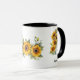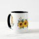 Personalisierter Vorname und erste Sonnenblumen blühen gelbe Tasse auf weißem Hintergrund, um Ihren Lieblings-Tee oder Kaffee im Stil mit unserer Sonnenblumen-Tasse zu schlucken. Lebhafte gelbe Blumen verleihen Ihrem Morgen eine fröhliche, blumenreiche Touch. Diese schicke, moderne Tasse ist ein perfektes Geburtstagsgeschenk für jeden besondere Anlass.