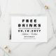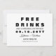 Ein modernes und lustiges Foto "KOSTENLOSE GETRÄNKE UND EIN WEDDING AUF DER SEITE" Hochzeit speichern die Dattelkarte, um Ihre Gäste zu knacken. Das Design zeichnet sich durch moderne Typografie mit einem Hauch von Script-Schriftart in schwarz auf weißem Hintergrund aus. Auf der Rückseite der Karte kann ein Foto hinzugefügt werden. Personalisieren Sie das Design, indem Sie den Text durch Ihre Daten und das Foto ersetzen.