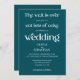 Das Warten ist vorbei, bitte schließen Sie sich uns an, um eine Menge Kuchen zu essen. Funny Minimal Design mit aquamarinem Hintergrund und trendiger Typografie. Der Text kann leicht für ein einzigartiges Design für Ihren besonderen Tag personalisiert werden.
