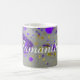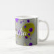 Diese personalisierte Tee- oder Kaffeekocher-Tasse eignet sich perfekt für jeden, der einen künstlerischen Flair zu seiner Morgenroutine hinzufügen möchte. Die lila und gelben Spritzer auf silberfarbenem Hintergrund bilden ein modernes und zeitgenössisches Muster auf dieser Tasse. Einfach und schnell personalisieren Sie Ihren Namen, der in einem weißen Skript erscheint.