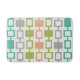 Ein schlichtes minimalistisches Muster, das durch die abstrakte Kunst der 1950er Jahre inspiriert wurde, mit Säulen aus abgerundeten Quadraten in Orange, Chartreuse grün, Türkis und Grau.