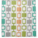 Ein schlichtes minimalistisches Muster, das durch die abstrakte Kunst der 1950er Jahre inspiriert wurde, mit Säulen aus abgerundeten Quadraten in Orange, Chartreuse grün, Türkis und Grau.