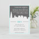 Moderne städtische Chicago-Skyline-Hochzeits-Einladung. Aufmachung einer modernen und zeitgenössischen Einladung mit mutigen Grauen, Weiß- und Türkisfarben und Spaß-Schriftartwahlen. Der Chicagoskyline wird gekennzeichnet, aber ist für JEDEN städtischen Stadthochzeits-Empfang groß. FARBEN UND STADTBILD KÖNNEN GEÄNDERT WERDEN, IN VERBINDUNG TRETEN MIT MIR GERADE ÜBER DEN KONTAKT-KNOPF IN MEINEM SPEICHER!