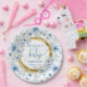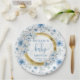 Moderne staubblaue bohfarbige Blume Gold Pappteller