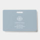 Personalisiertes modernes skandinavisches staubblaues minimalistisches horizontales Mitarbeiterausweis-Abzeichen mit Foto und Firmenlogo . Dieses elegante Abzeichen enthält ein benutzerdefiniertes Logo, Namen, Foto und Titel für ein poliertes Aussehen. Perfekt für Unternehmen, die eine stilvolle und kohärente Identität suchen.