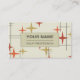 Dieses Retro-atomar-Ära-Muster hat Vintage Sterne und Linien, mit einem Farbschema aus Rot, Orange und Gelb, auf einem gelb-grünen Hintergrund.