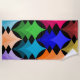 Dieses Strandtuch wurde Mitte des Jahrhunderts von Retrostern in Rot-, Orange-, Gelb-, Grün-, Blau- und lila-Tönen gestaltet.