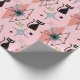 Moderne Sterne und Katzen Muster Rosa Mitte Geschenkpapier