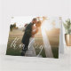 Wir bedanken uns bei Ihnen für die Fotokarte mit der eleganten weißen Stilschrift und ein Dankeschön an Ihre Gäste. Personalisieren Sie das Bild und den Text der Paare.