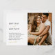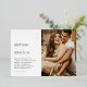 Bringen Sie Ihre Trauung mit minimalistischen fotografischen Einladungen zum Leben! Diese eleganten und modernen Einladungen verfügen über einen schlichten, weißen Hintergrund mit einem Foto auf der Vorder- und Rückseite, das Sie leicht durch Ihre eigenen ersetzen können. Um sie besonders zu gestalten, haben sie eine partielle, reale Vorlage mit allen Ihren Hochzeitsdetails, die dieses einzigartige Design wirklich einzigartig macht. Mit diesen minimalistischen Einladungen zum Foto stellen Sie sicher, dass sich Ihre Hochzeit von der Masse abhebt! Mit ihrem modernen und zeitlosen Look werden Ihre Gäste von dem subtilen Luxus begeistert sein, den jeder einlädt. Sie können sicher sein, dass Ihre Gäste von der Qualität dieser schönen Hochzeitsfeiern beeindruckt werden.