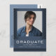 Stilvolle Postkarten für Abschluss mit modernem Text für ein berufliches Aussehen. Das Foto der Absolventen wird durch dünne Rahmen in staubblauen Farbtönen ergänzt. Die Rückseite der Karte bietet personalisierte Textstellen für Informationen über den Abschluss und die zukünftige Reise. Um mehr zu sehen, besuchen Sie meinen Shop hier unter "www.Zazzle.com/LakeViewCardCo". Danke