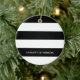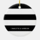 Moderne Streifen Schwarz-Weiß-Muster individuelle Name Monogramm Keramik Weihnachtsschmuck
