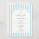 Moderne Streifen Christening Taufe Dusty Blue Boy Einladung