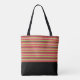 Nimm diese Tasche überall mit ihrem modernen und einfachen Design. Diese Tasche weist ein fett gestreiftes Muster in hellen Farben auf, das unten durch einen schwarzen Block gekennzeichnet ist. Personalisieren Sie diese Tasche mit Ihrem eigenen Monogramm.