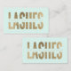 Eine moderne, stilvolle Visitenkarte des Makeup-Künstlers mit moderner ausgeschnittener Typografie in Imitaten mit Goldfolie auf einem angesagten und eleganten, pastellfarbenen, grünen Hintergrund. Wenn Sie eine Anpassung benötigen, zögern Sie nicht, mich zu kontaktieren