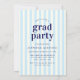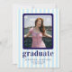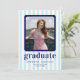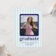 Feiern Sie stilvoll mit unserer schicken und modernen Abschlussfeier-Einladung! Dieses Design mit spielerischen, hellblauen und weißen Streifen als Hintergrund ist mit feinem marineblau-blauen Texten geschmückt und bietet einen lebendigen und zeitgenössischen Flair. Es ist perfekt darauf zugeschnitten, ein hochgeschätztes Foto zu präsentieren. Es ist ein ausgeklügelter Weg, Lieblinge zu den Feiern einzuladen.