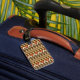 Gepäckanhänger im Südwesten / Azteken inspiriert, moderne geometrische Streifen - schokoladenbraun mit Rost / Terrakotta, beige und Kamelbraun mit weißen Akzenten