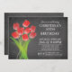 Gründen Sie Ihr Geburtstags-Party weg vom Recht mit unserem hübschen Blumenstrauß der roten Tulpe-Party Einladung, die ein zeitgenössisches Bündel des roten Tulpe-Blumen-Sets auf einem Tafelhintergrund kennzeichnet. Drehen Sie unser BlumenBlumengeburtstags-Party für Erwachsene vorbei um, um eine zusammenpassende Tafel hinter zu finden für eine spezielle ExtraTouch! Verfügbar in unserem Geschäft in einer Vielzahl der Tulpefarbwahlen. Perfekte Wahl für einen 21. Geburtstag, 30. Geburtstag, 40. Geburtstag, 50. Geburtstag.