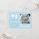 Eine moderne, stilvolle und unbedeutende Tauf- oder der Taufeblaue Pastelleinladung zu Ehren des Babys. Ausrüstungsbeschreibungsschlüsseltaufeelemente wie die Taube, die Kerze mit einem Kreuz und ein Raum für Fotopersonifizierung vom wenig eine. Auf Rückseite ist die Seite ein blaues und weißes Zickzack Zickzackpastellmuster. Personifizieren Sie leicht mit Ereignisdetails.