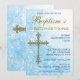 Verziertes Kreuz mit Wirbel von Reben und Lilien. Passen Sie diese hübsche Einladung mit Ihrem eigenen Text an. Das Kreuz kann bei Bedarf verschoben werden. Originalbild von pj_design.