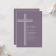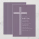 Feiern Sie den besonderen Tag Ihrer Tochter mit dieser modernen violetten Tauf-Einladung mit Kreuz. Mit einem sauberen minimalistischen Kreuzdesign auf einem weichen, gedämpften violetten Hintergrund bietet diese elegante religiöse Einladung einen zeitlosen und anspruchsvollen Look.