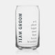 Modernes "Team Groom" Glas, das mit den Namen der Trauzeugen personalisiert werden kann. "Team Groom" in dunkelmetallgrau. Namen und Nachricht auf der Rückseite in einem grauen Schriftart.