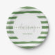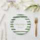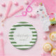 Schlichte und stilvolle moderne grüne gestrichelte Streifen Musterschwerkraftwerk Teller Papier. Hat passendes Zubehör. Typografie ist anpassbar und Sie können ein Foto Ihres Absolventen hinzufügen.