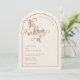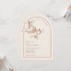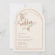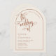 Eine elegante und moderne Terrakotta und beige bogenförmige Hochzeit laden zu einem handgeschriebenen Akzent ein. Auf einem neutralen beigen Hintergrund mit Terrakotta-Text und Designelementen dargestellt, aber alle Elemente können nach Ihrem Thema neu gefärbt werden. © Kimbellished, LLC