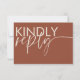 Dies ist eine einfache minimalistische Vorlage für Ihre Hochzeit rsvp. Kontrastbeige Typografie auf Terrakotta-Hintergrund. Sie müssen nur das Datum ändern.