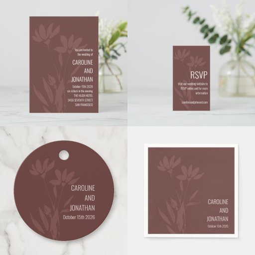 Terracotta Brown Modern Floral Silhouette WeddingDesignt von Opal Ellery