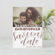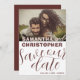 Einfach und modern gerettet unsere Dates Hochzeitsankündigung, mit fett gedrucktem Text in dunkler Terrakotta und Rose Gold. Passen Sie Ihr Foto und Ihre Informationen an.